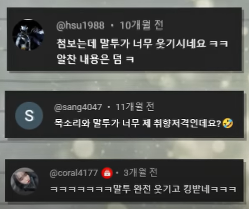 이건 유튜브 댓글 창에서도 확인할 수 있다. 누군가는 더빙하는 목소리를 보고 이런 댓글을 달고